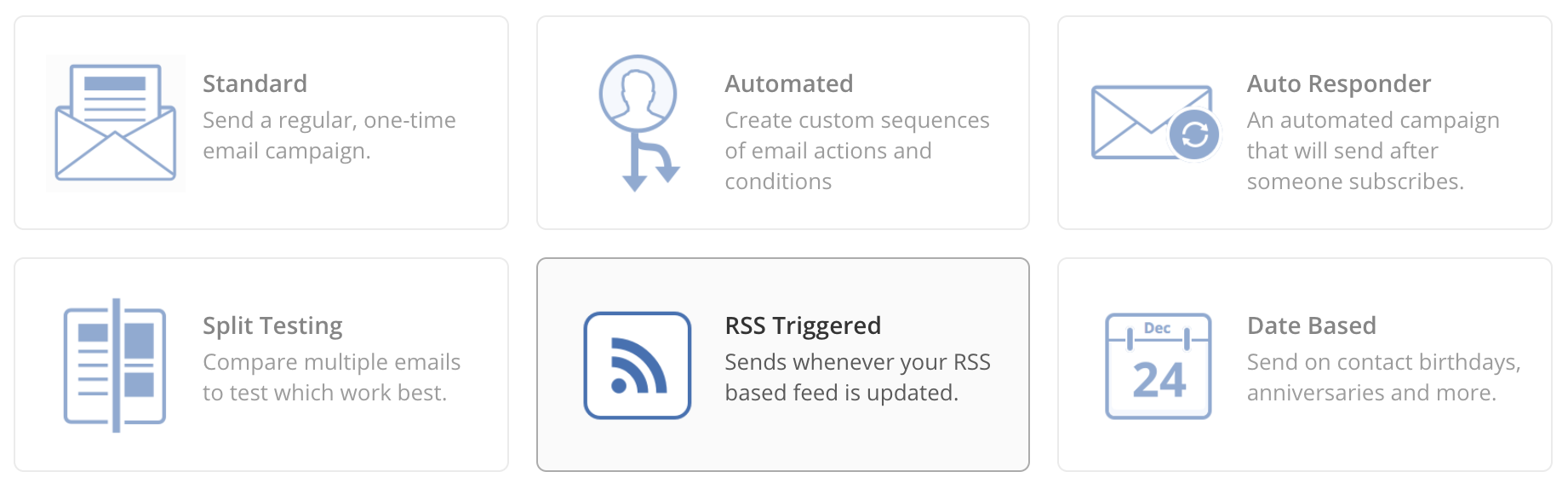 It's also possible to use the ActiveCampaign RSS-to-Email feature to generate automated newsletters of your latest content on Ghost, directly to your subscribers! To do this, create a new RSS Triggered campaign: