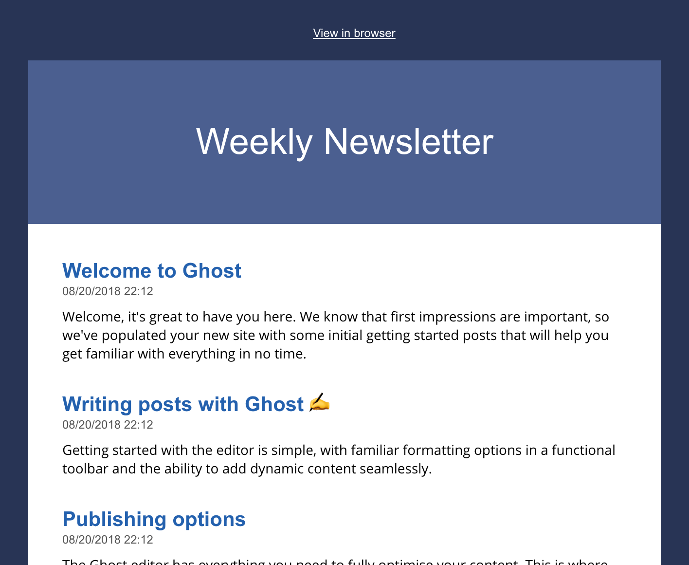 On the other hand, if you'd like to add a newsletter signup form to multiple pages of your site - then you'll need to add the embed code to your Ghost theme.