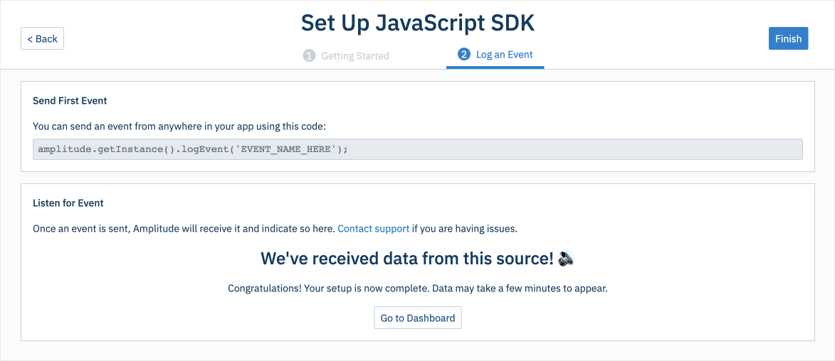 These events are just two examples. For more information about how to implement events, visit the Amplitude developer documentation.