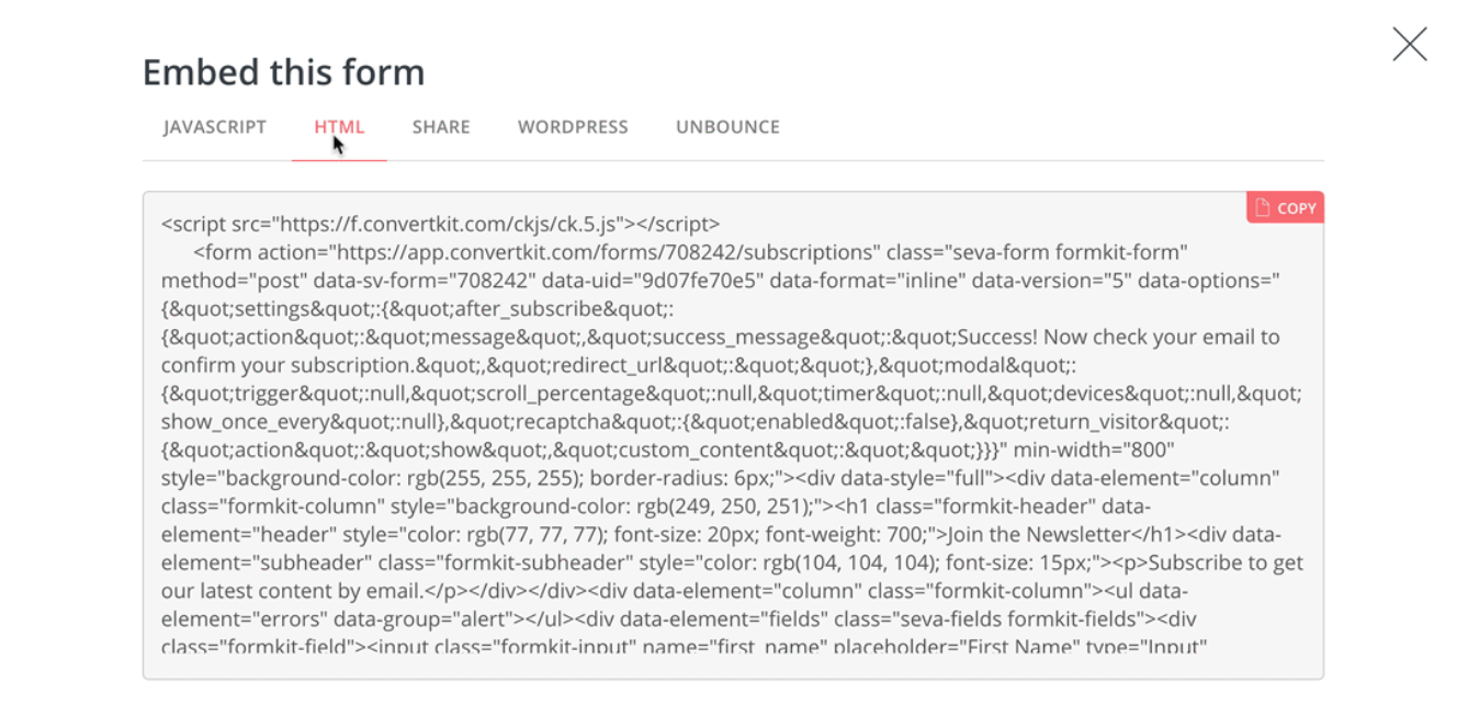 If you prefer to use ConvertKit's own subscriber forms directly - you can use any of the form builders, modals or other embed options provided by ConvertKit within Ghost. Once you create a new form in your ConvertKit account, you can integrate it with your Ghost site using code injection, using HTML cards or directly in your site's theme files.