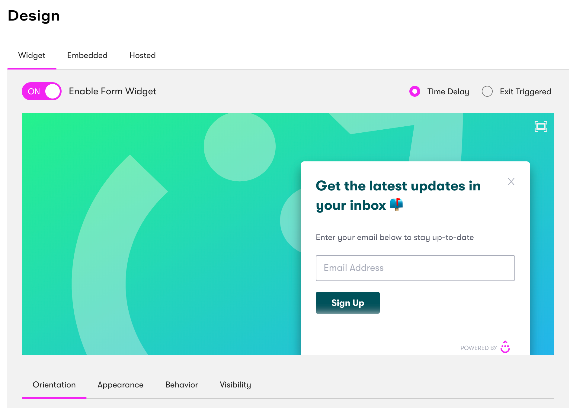 Each form you create has a unique reference name and can be configured individually, with the option to use the embed code to inject raw un-styled forms in HTML, or the widget popup forms across your site.
