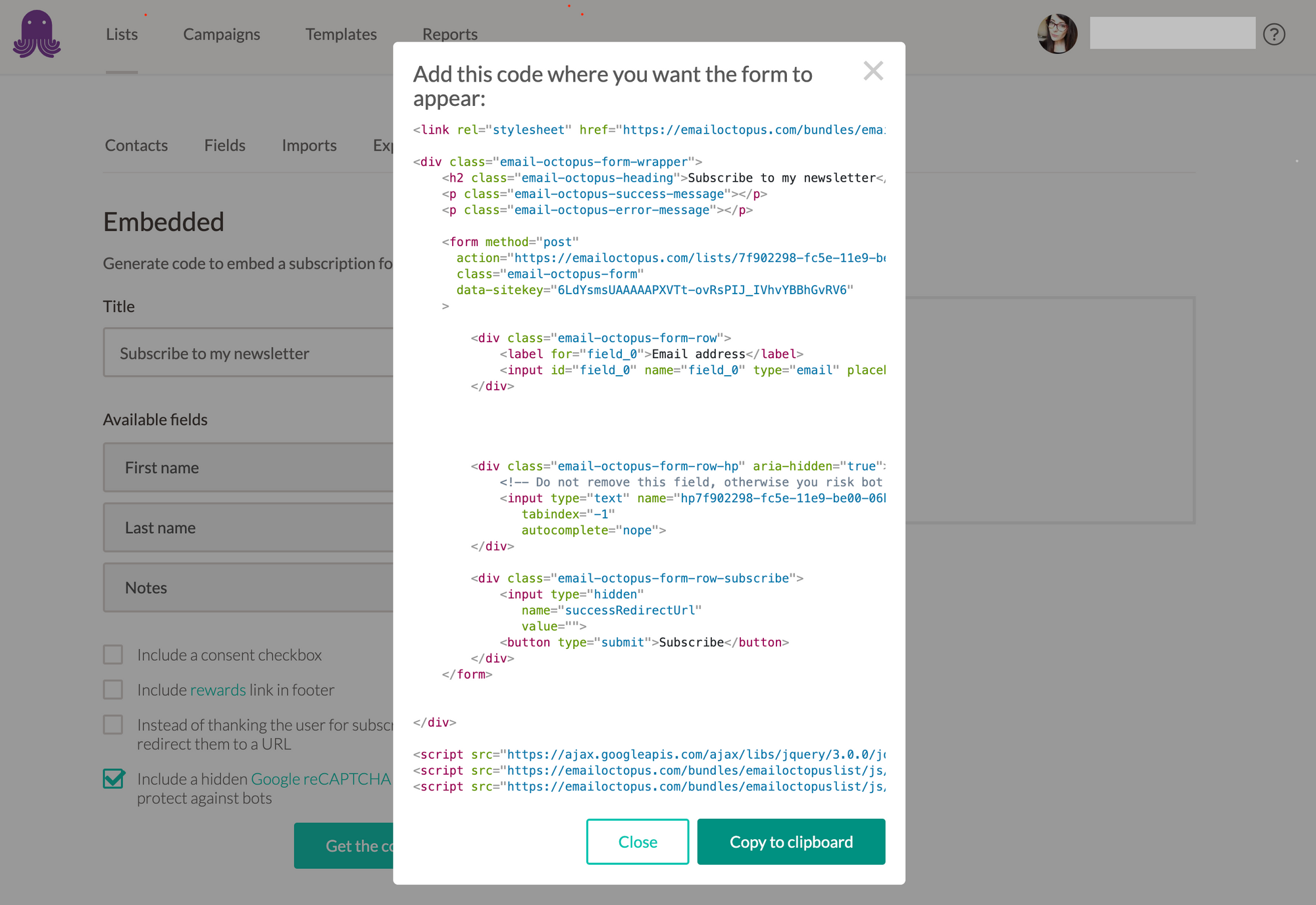 If you prefer to use EmailOctopus subscriber forms directly - you can do that too. It's as easy as creating a form in EmailOctopus, and pasting the code provided on your site.