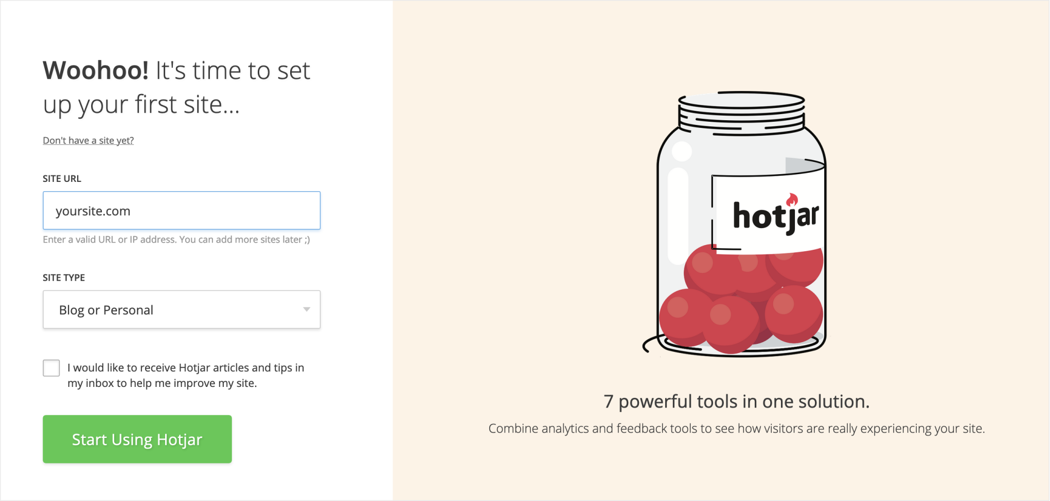 When you set up a new Hotjar account, follow the instructions to create your first site for your Ghost publication.