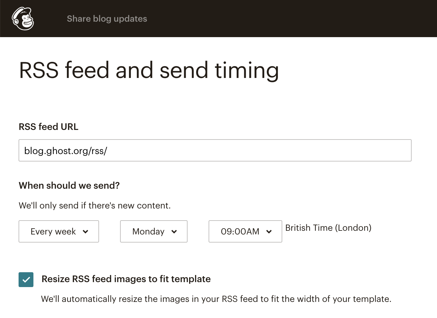 Mailchimp will then automatically read your RSS feed at the time interval you specify and email your subscribers all of your latest posts automatically!