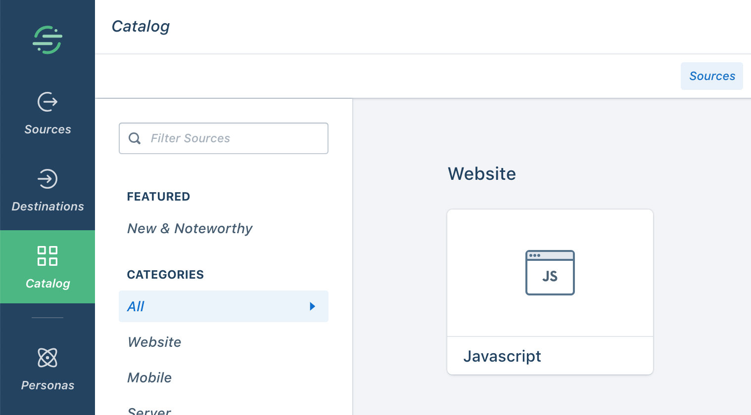 When you create a new Segment account, follow the instructions to create your first data source for your Ghost site. Select the Website source.