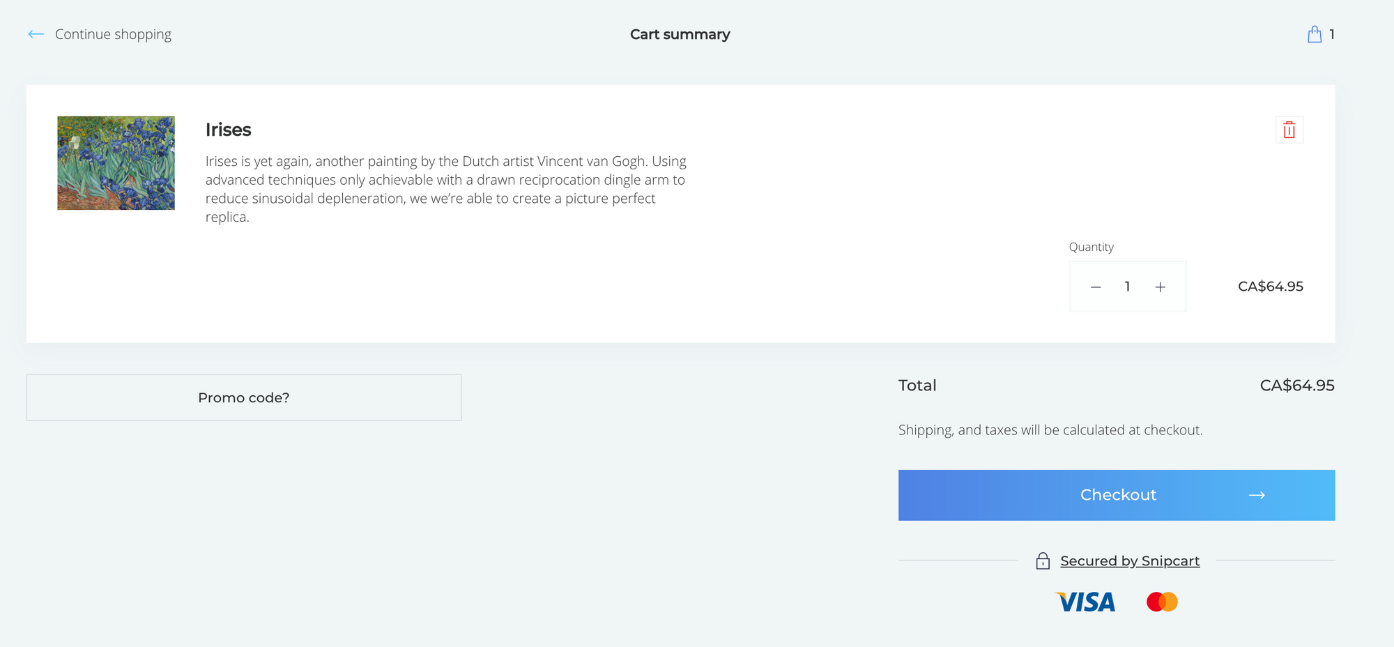 You can preview a Snipcart buy button in action on their homepage - when a visitor clicks the buy button it looks something like this: