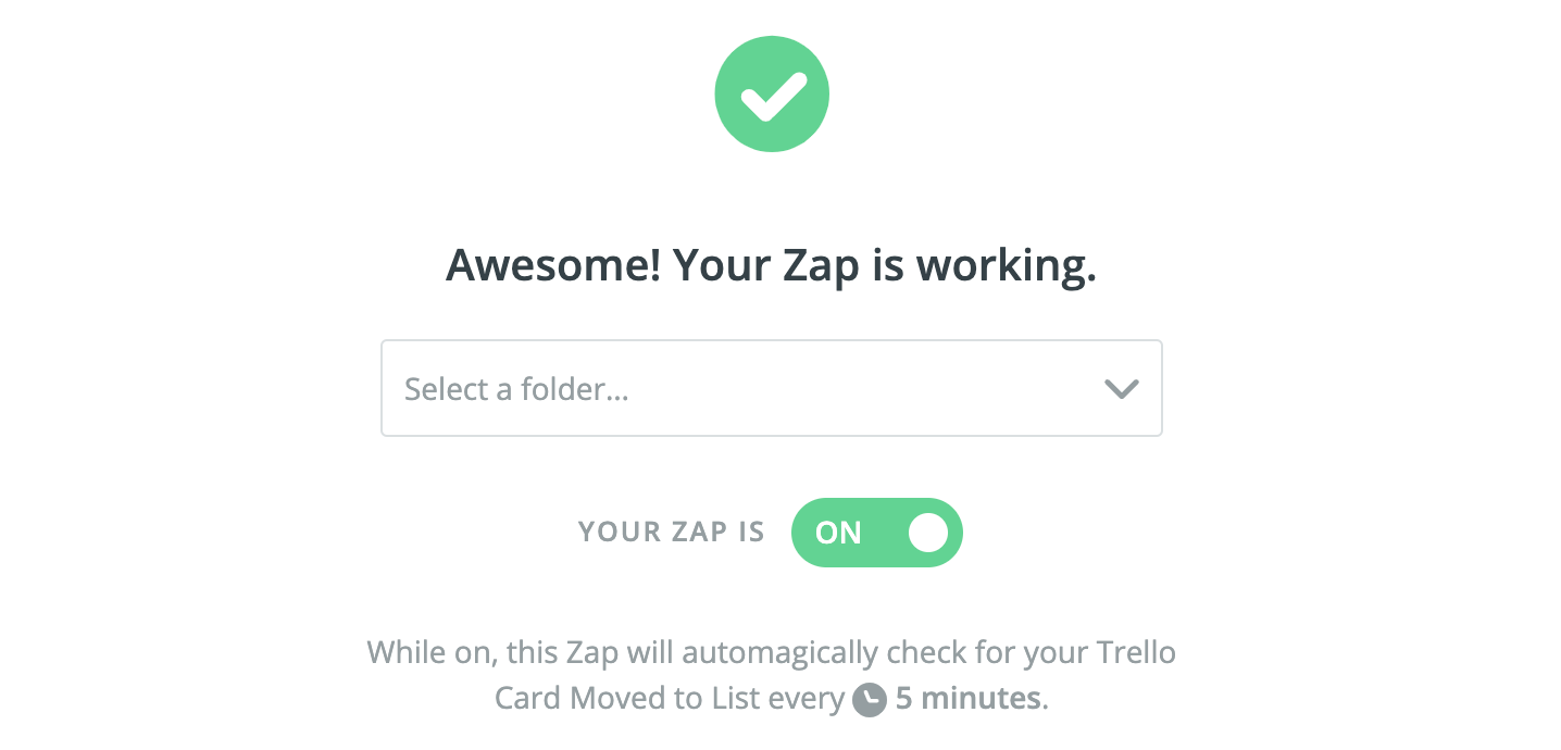 Once you've done this, Zapier will show you some sample cards for testing purposes - ensure this is working before moving to the next step.
