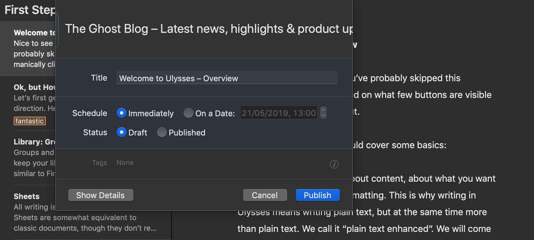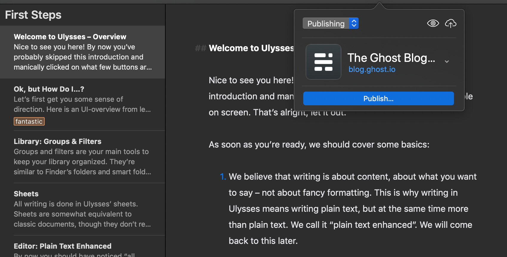 Create content with Ulysses and publish directly to your Ghost publication with a time-saving integration