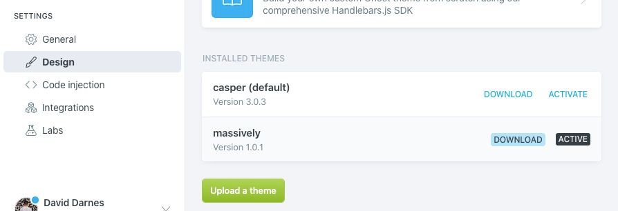 When you've finished deploy your theme by zipping up the root folder and uploading the new zip file from the Design page in Ghost Admin. Using the same name will overwrite the previous version of this theme.