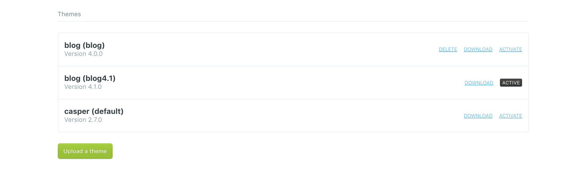 Once you've finished creating your partial template and made any necessary adjustments to your CSS files, update your site's active theme to get it up and running. The easiest way to implement a new theme is to upload the .zip file in Ghost Admin under the Design Settings menu.